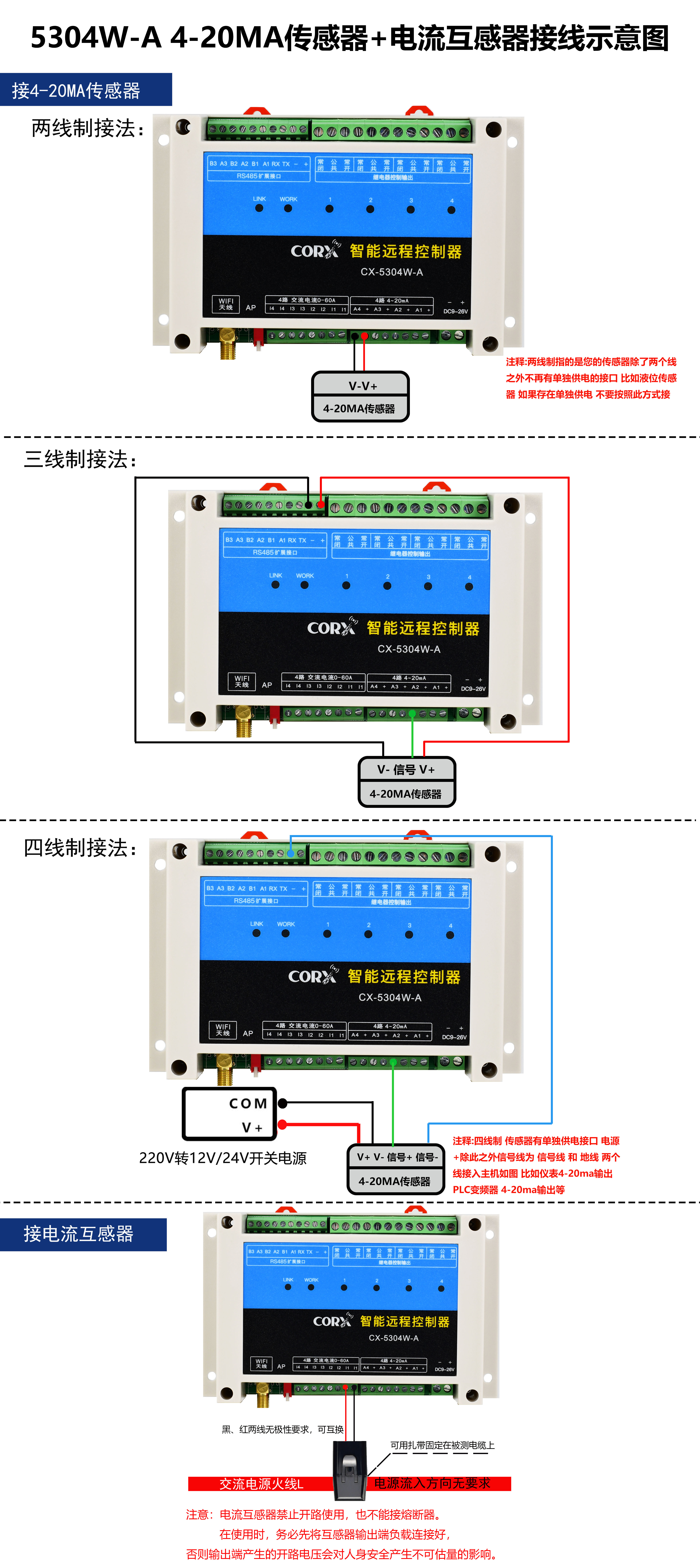 5.WiFi设备-CX-5304W-A电流互感器+4-20mA接线示意图